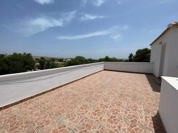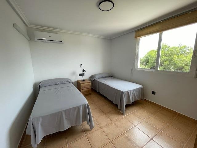 Además, está situada a aproximadamente 10 minutos en coche del Aeropuerto de Alicante-Elche, a solo 5 minutos de la farmacia más cercana, y cuenta con fácil acceso a supermercados y tiendas, lo que la convierte en una opción muy cómoda para estancias cortas o largas.